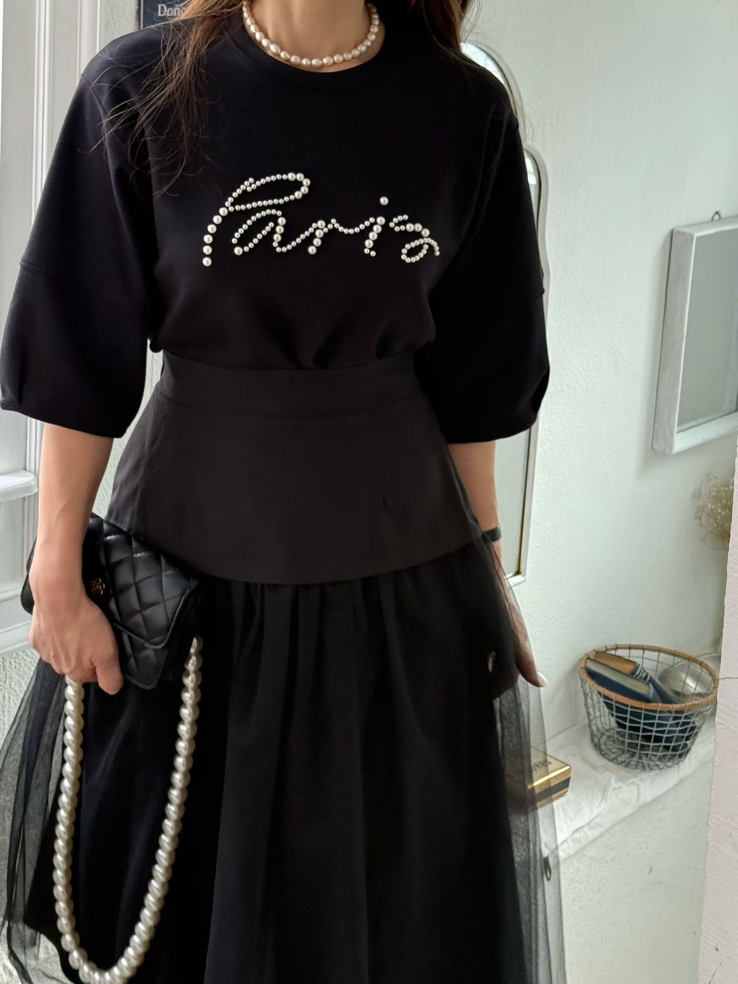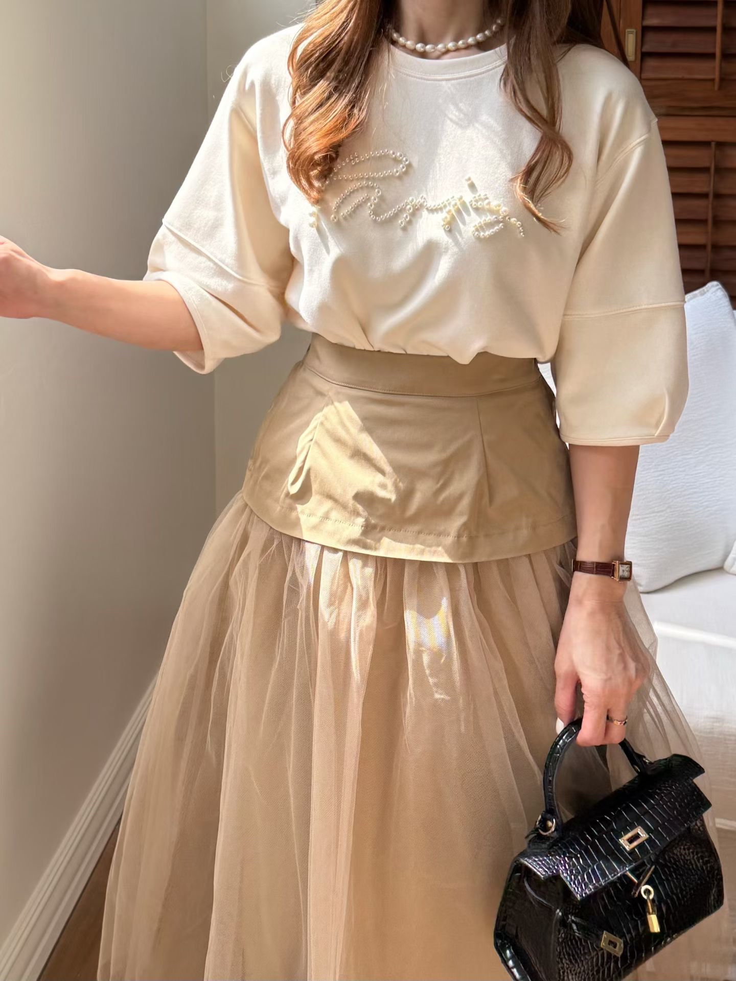 泡袖珠珠top